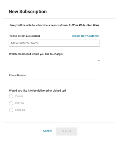 - Fill in the popup with the customer's information to subscribe them to the plan